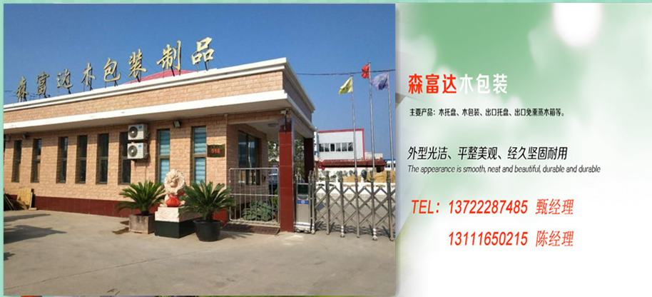 定興縣森富達木包裝制品有限公司,主要產品:木托盤、木包裝、出口托盤、出口免熏蒸木箱等。能出據出境貨物木質包裝除害處理標識加施防偽熏蒸證明。該產品采用優質硬木材料,確保托盤品質,外型光潔、平整美觀、經久堅固耐用,托盤使用周期長,安全穩定,具有承載量大,成本低,無蛀蟲等特點。適用范圍:物流、機械電子等行業,我們的產品外形美觀,質量可靠。交貨及時講究信譽。有生產和經濟上的實力。我們的產品已先后出口到美國、韓國、印度、意大利、俄羅斯及眾多國家。得到了國內外客戶的廣泛贊譽與認可。咨詢熱線:15930439758 陳經理